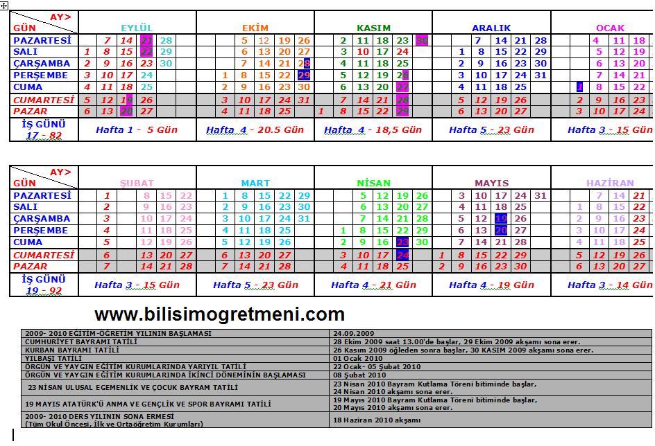 Plan-Zümre, 2009-2010 Eğitim Öğretim Yılı, 2009-2010 Eğitim Öğretim Yılı Çalışma Takvimi dosyayı indirmek için linke tıklayın..