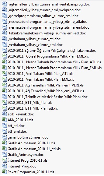 Plan-Zümre, 2010-2011 Eğitim Öğretim Yılı, Veri Tabanı ve Web Programcılığı Dalları Yıllık Planları ve Zümreleri<— Tıkla