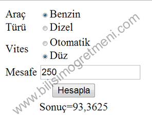 Bir araç yakıt programı yapılmak isteniyor. Araç Türü, gidilecek mesafe ve vites türüne göre yakıt fiyatı hesaplanacaktır. Gidilecek mesafe km cinsinden girilecektir. Araç; Benzinli ise 100 klm de ortalama 7.7lt benzin yakmaktadır.