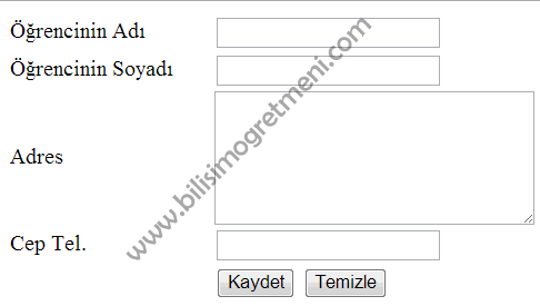 Veri Ekleme http://www.bilisimogretmeni.com/asp-net/asp-net-dersleri-asp-net-ile-access-veritabani-islemleri-2-veri-ekleme.html