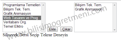 Label1.Text = "Silinecek Dersi Seçip Tekrar Deneyin";
