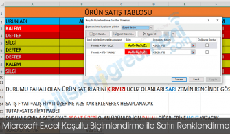 Koşullu Biçimlendirme ile Satırı Renklendirme