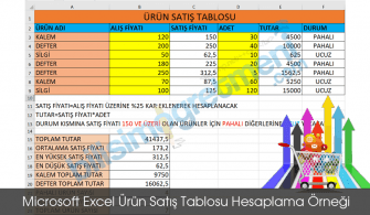 Excel Ürün Satış Tablosu Hesaplama Örneği