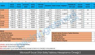 Excel Ürün Satış Tablosu Hesaplama Örneği 2