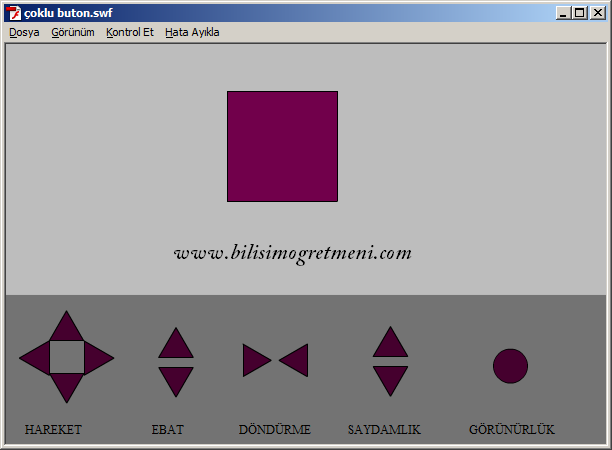 Action Script 3.0 Nesneyi Hareket Ettirme, Döndürme, Büyütme, Küçültme ve Görünürlük Özelliği Değiştirme