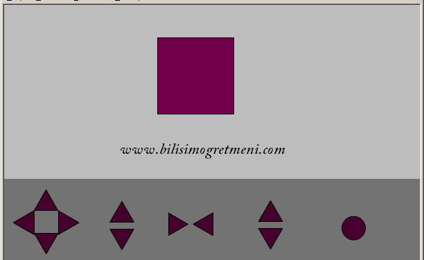 Action Script 3.0 Nesneyi Hareket Ettirme, Döndürme, Büyütme, Küçültme ve Görünürlük Özelliği Değiştirme işlemlerini bir örnek içerisinde açıklayalım ama öncelikle aşağıdaki görüntüyü oluşturalım daha sonra ortadaki kutuya nesne_mc ( nesnelere isim vermek için F8 yapıp movi eklip seçiyoruz ve ismimizi yazıyoruz) yön işlemleri için hust_btn,halt_btn,hsag_btn ve hsol_btn, boyularını değiştirmek için eust_btn ve ealt_btn, döndürme işlemleri için dsag_btn ve dsol_btn , saydamlık özellikleri için sust_btn ve salt_btn, görünürlük özellikleri için g_btn isimlerini veriyoruz.