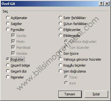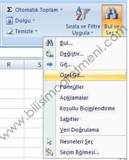 1-İlk yapmanız gereken Bul ve Seç bölümünden Özel Git seçeneğini seçmek veya F5 tuşuna basıp Özel butonuna tıklamak