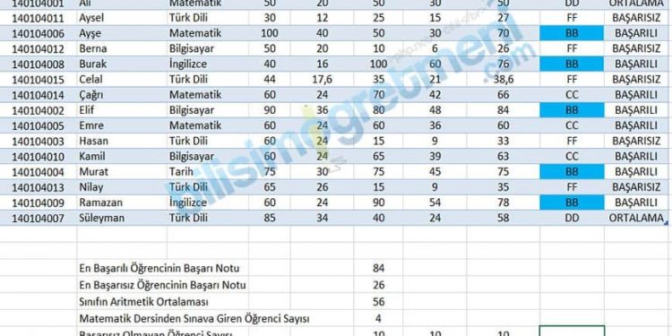 merhaba başarı notu kısmındaki kodu sadece notu bulmak için nasıl kullanabilirim aynı yüzdeler üzerinden yardımcı olursanız sevinirim