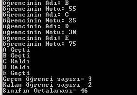 Visual Studio C# Dersleri – C# Diziye Girilen Sınıf Bilgilerine Göre Not,Geçen,Kalan ve Ortalama Hesaplayan Program