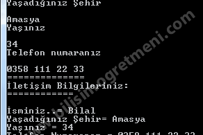 Aşağıdaki uygulamada programda veri türleri ve değişkenlerin nasıl kullanılacağını inceleyeceğiz. Uygulamamızda Kullanıcının girdiği İsim,Yaşadığı İl,…