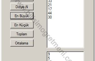 Kullanıcının girmiş olduğu sayıları listbox'a ekleyen daha sonra listbox daki elemanları diziye aktarıp En Büyük,…