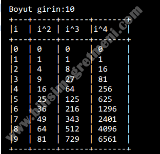 Visual Studio C# Dersleri – Dizi index numarasına göre kare,küp ve dördüncü kuvveti