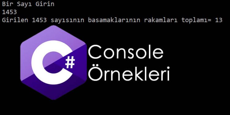 Console.WriteLine("Girilen {0} sayısının basamaklarının rakamları toplamı= {1}", sayi, toplam);