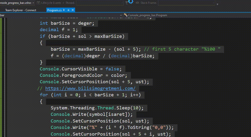 AnasayfaC# Console ProgressBar admin tarafından 3 Haziran 2020 0 kez okundu Okuma süresi: 0dk, 0sn + - 0Bu İçeriğe Tepkin Ne Oldu?0 Başarılı0 Gayet İyi0 Teşekkürler0 Anlamadım0 Yetersiz