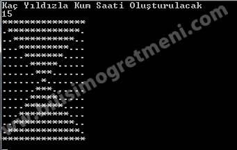 Console.WriteLine("Kaç Yıldızla Kum Saati Oluşturulacak");