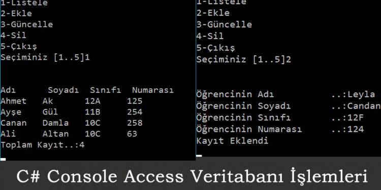 Şimdiye kadarki C# uygulamalarımızda veritabanı işlemlerini hep Form üzerinden yapıyorduk. Bu örnek de C# Console ile veritabanı üzerinde (Select-Insert-Update-Delete) işlemlerini gerçekleştireceğiz ilk olarak aşağıdaki özelliklerde bir tablo oluşturuyoruz. Örneğimiz için Veritabanı ismi okul tablomuz ise ogrenci olacak