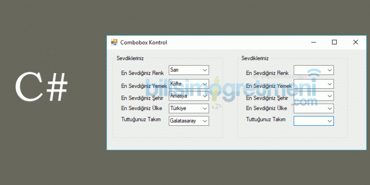 Yapılan işlemler kısaca ilk olarak groupBox1.Controls içindeki tüm nesneleri item isimli Control e atadık daha sonra item nesnesindeki Comboboxları seçip ilk elemanlarının seçili olmasını sağladık