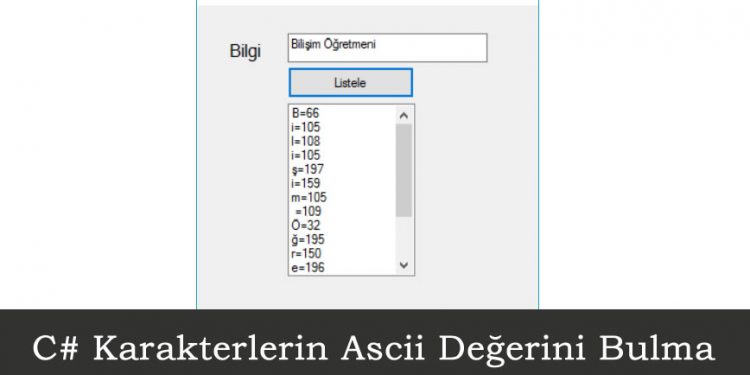 C# ile girilen bir karakter dizisindekilerin ascii kodlarını bulan ve bunları listbox içine ekleyen uygulama