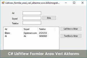 C# ListView’ler Arası Satır Aktarma Farklı Formlar