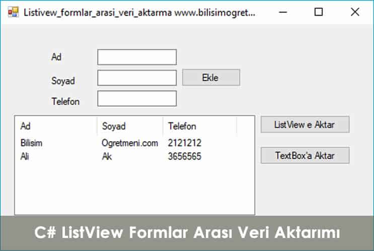 C# ListView'ler Arası Satır Aktarma Farklı Formlar