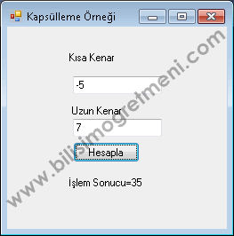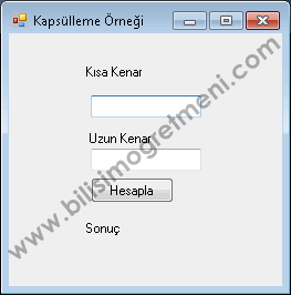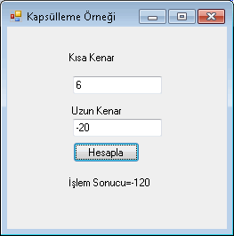 Şimdi de hesapla butonuna tıklayıp kapsülleme sınıfından bir nesne türetip hesaplama işlemini yapalım.