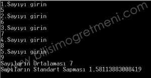 Console.WriteLine("Sayıların Standart Sapması {0} ", standart(sayilar));