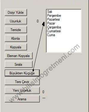 dizi elemanları pazartesi,salı… şeklinde ekli ama Array.Sort(gunler); satırı ile gunler dizisi a’dan z’ye sıralanıyor yani sonuç