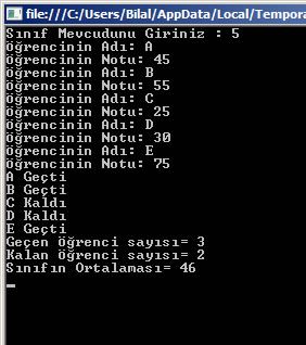 Console.WriteLine("Geçen Öğrenci sayısı= " + gecen);