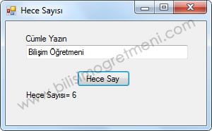 daha sonra textbox içerisindeki değeri bir değişkene alıp harf harf kontrol edip sesli harf gördükçe hece değerini bir arttırıyoruz..