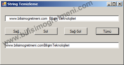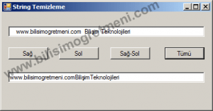 Console.WriteLine("Sağ ve Sol boşlukları sil=" + metin.Trim());