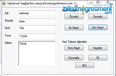 3-C# SqlServer Veri Tabanı Kayıtlar Arasında Gezinti