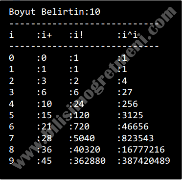 3- a3 dizisinin her bir elemanı bulunan indexin faktöriyeli