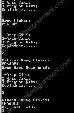 C# örneklerimize otopark programı ile devam ediyoruz, 20 araçlık bir otoparkta araçları plaka bilgisini alarak kayıt eden, eğer 20’den fazla araç girilmişse uyarı mesajı veren, araç çıkışı için girilen plakaya göre arama yapan araç bulunursa park süresi 1 saat 5,2 saat 10, 3 saat için 15 daha fazla ise 40TL ücret alan C# otopark programı kodları ve Ekran görüntüsü, program içerisinde ArrayList kullanılmış olup ArrayList’ eleman ekleme,Arraylist eleman arama ve silme konularını da içeren bir örnek olmuştur.