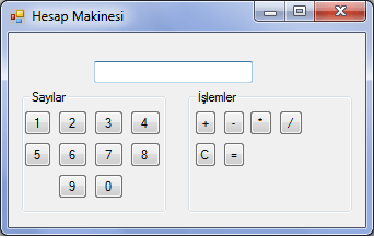 Bu kadar dediğim gibi basit yapılı bir hesap makinesi daha sonra öğreneceğiniz fonksiyonlarla bu formu dahada geliştirebilirsiniz…