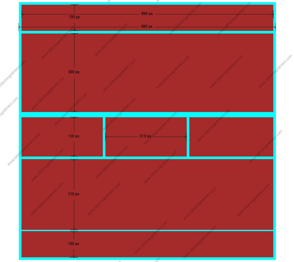 Css Derslerimize yeni bir div uygulaması ile devam ediyoruz aşağıda şablonu verilen sitenin css dökümü istenmektedir buna uygun html ve css kodlarımız ve ekran çıktısı aşağıdadır.