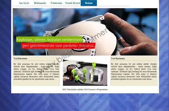 5-İçerikler için yan yana 3 kutu oluşturulacak 1.ve 3 kutu aynı özelliklerde olacaktır. Özellikleri zemin rengi #F0EAD2, genişlik 308px; çerçeve 1px, yazı boyutu 14px , iki yana yaslı olacak, Veri Kurtarma başlıkları h1 etiketi ile yapılacak ve onların yazı boyutu 14px, alt çerçeve noktalı olması sağlanacaktır.. (32p)