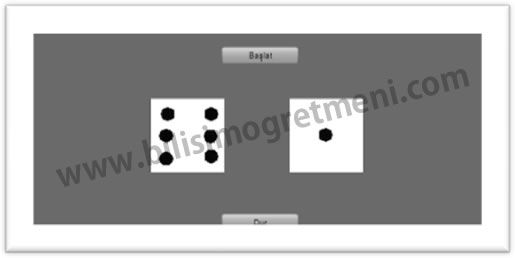 S3 dosyasında verilen zar atma animasyonunu yapın.Zar için gerekli olan resim dosyaları zar klasörü içerisindedir.Başlat butonu ile zar1 ve zar2 değerleri değişecek Dur butonu ile duracak.